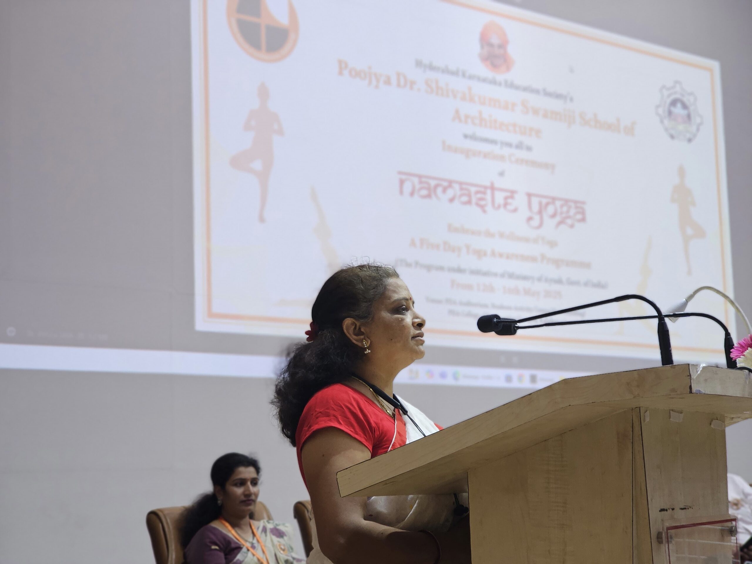 ಅವರು ಹೈದರಾಬಾದ್ ಕರ್ನಾಟಕ ಶಿಕ್ಷಣ ಸಂಸ್ಥೆಯ ಪೂಜ್ಯ ಡಾ ಶಿವಕುಮಾರ ಸ್ವಾಮೀಜಿ ಸ್ಕೂಲ್ ಆಫ್ ಆರ್ಕಿಟೆಕ್ಚರ್ ಹಾಗೂ ಭಾರತ ಸರ್ಕಾರದ ಆಯುಷ್ ಸಚಿವಾಲಯದ ಸಹಯೋಗದಲ್ಲಿ ನಡೆದ ನಮಸ್ತೆ ಯೋಗ ತರಬೇತಿ ಕಾರ್ಯಕ್ರಮ ಉದ್ಘಾಟಿಸಿ ಮಾತನಾಡುತ್ತಿದ್ದರು.