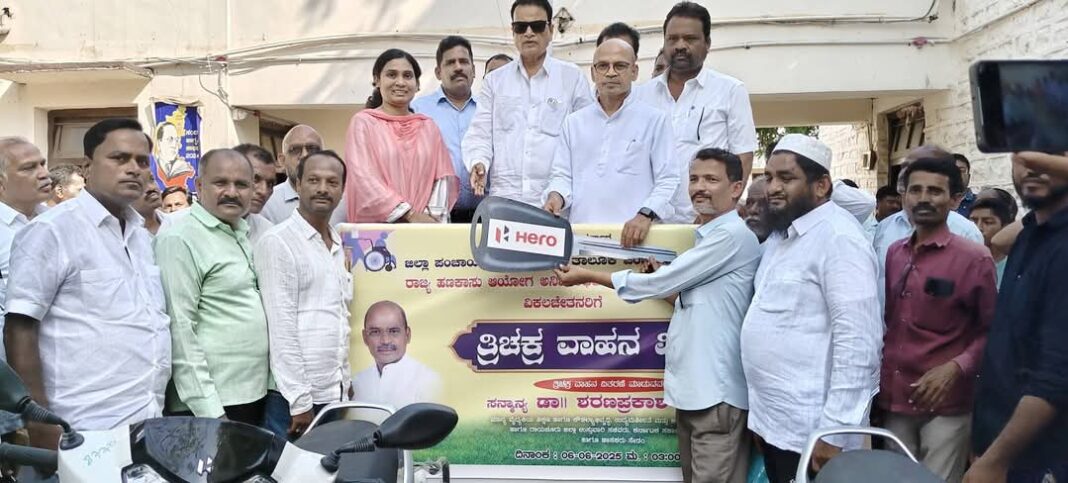 ಈ ವೇಳೆ ಮಾತನಾಡಿದ ಸಚಿವ ಡಾ.ಶರಣಪ್ರಕಾಶ್ ಪಾಟೀಲ್, ಸುಸ್ಥಿರ ಸಮಾಜ ನಿರ್ಮಾಣಕ್ಕೆ ಎಲ್ಲಾ ಸ್ಥರಗಳ ಜನರ ಅಭಿವೃದ್ಧಿ ಮುಖ್ಯ. ಈ ನಿಟ್ಟಿನಲ್ಲಿ ನಮ್ಮ ಸರ್ಕಾರವು ಬಡವರ, ಹಿಂದುಳಿದವರ ಪರವಾಗಿ ಯೋಜನೆಗಳನ್ನು ರೂಪಿಸುತ್ತಾ ಬಂದಿದೆ. ಇದೇ ರೀತಿ ನನ್ನ ವಿಧಾನಸಭಾ ಕ್ಷೇತ್ರದಲ್ಲಿರುವ ವಿಕಲಚೇತನರಿಗೆ ಅನುಕೂಲವಾಗುವ ನಿಟ್ಟಿನಲ್ಲಿ ಫಲಾನುಭವಿಗಳಿಗೆ ತ್ರಿಚಕ್ರ ವಾಹನ ವಿತರಿಸಲಾಗಿದೆ ಎಂದು ಹೇಳಿದರು.