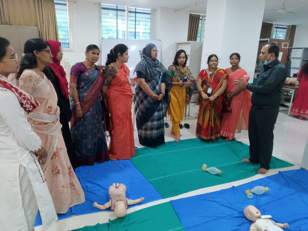 ಕಲಬುರಗಿ: ಹಠಾತ್ ಹೃದಯಾಘಾತದ ಪ್ರಕರಣಗಳು ಇತ್ತೀಚೆಗೆ ಹೆಚ್ಚಾಗುತ್ತಿವೆ. ಈ ಸಂಬಂಧ ಕಾರ್ಡಿಯೋ ಪಲ್ಮನರಿ ರಿಸಸಿಟೇಶನ್ (CPR) ಮಾಡುವುದು ಸೇರಿದಂತೆ ತುರ್ತು ಆರೋಗ್ಯ ಚಿಕಿತ್ಸೆಗಳ ಕುರಿತು ಹೈದರಾಬಾದ್ ಕರ್ನಾಟಕ ಶಿಕ್ಷಣ ಸಂಸ್ಥೆಯ ಎಲ್ಲಾ ಶಾಲಾ ಕಾಲೇಜುಗಳ ಉಪನ್ಯಾಸಕರಿಗೆ ಹಾಗೂ ಸಿಬ್ಬಂದಿಗಳಿಗೆ ಸಂಸ್ಥೆಯ ಅಧ್ಯಕ್ಷರಾದ ಶಶೀಲ್ ನಮೋಶಿಯವರ ಜನ್ಮ ದಿನದ ಅಂಗವಾಗಿ ಸಂಸ್ಥೆಯ ಕ್ಯೂ ಎ ಸಿ ವತಿಯಿಂದ ಎಂ ಆರ್ ಎಂ ಸಿ ವೈದ್ಯಕೀಯ ಮಹಾವಿದ್ಯಾಲಯದಲ್ಲಿ ತರಬೇತಿ ನೀಡಲಾಯಿತು.