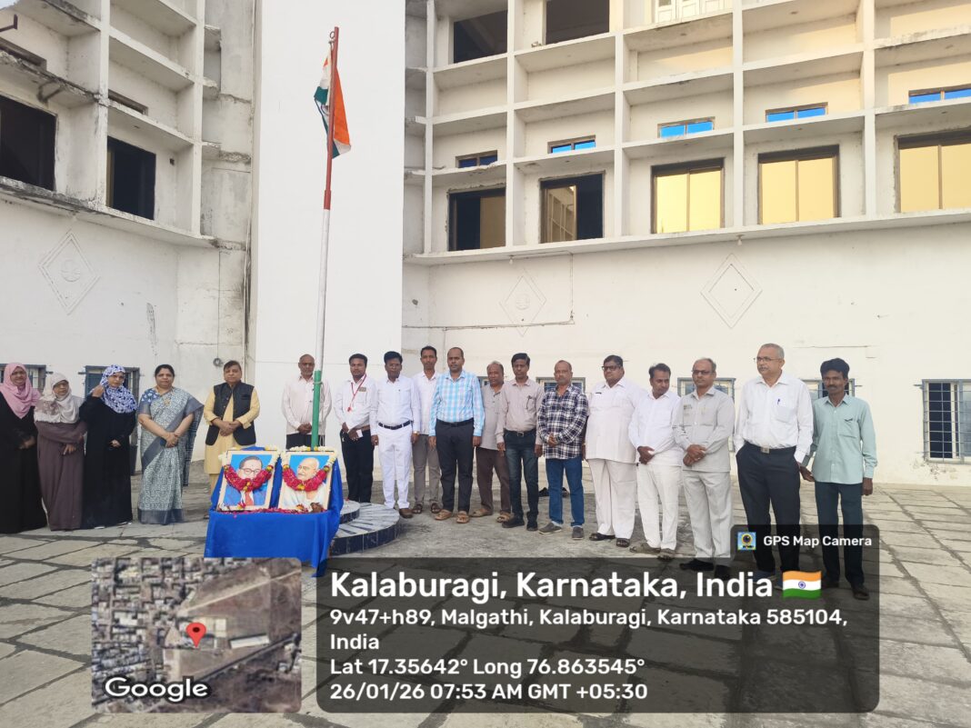 ಕಲಬುರಗಿ: ಚಾಂದ ಬೀ ಬೀ ಮಹಿಳಾ ಶಿಕ್ಷಣ ಮಹಾವಿದ್ಯಾಲಯದಲ್ಲಿ 77ನೆಯ ಗಣರಾಜ್ಯೋತ್ಸವ ನಿಮಿತ್ತ ರಾಷ್ಟ್ರಧ್ವಜಾರೋಹಣ ನೆರವೇರಿಸಲಾಯಿತು.